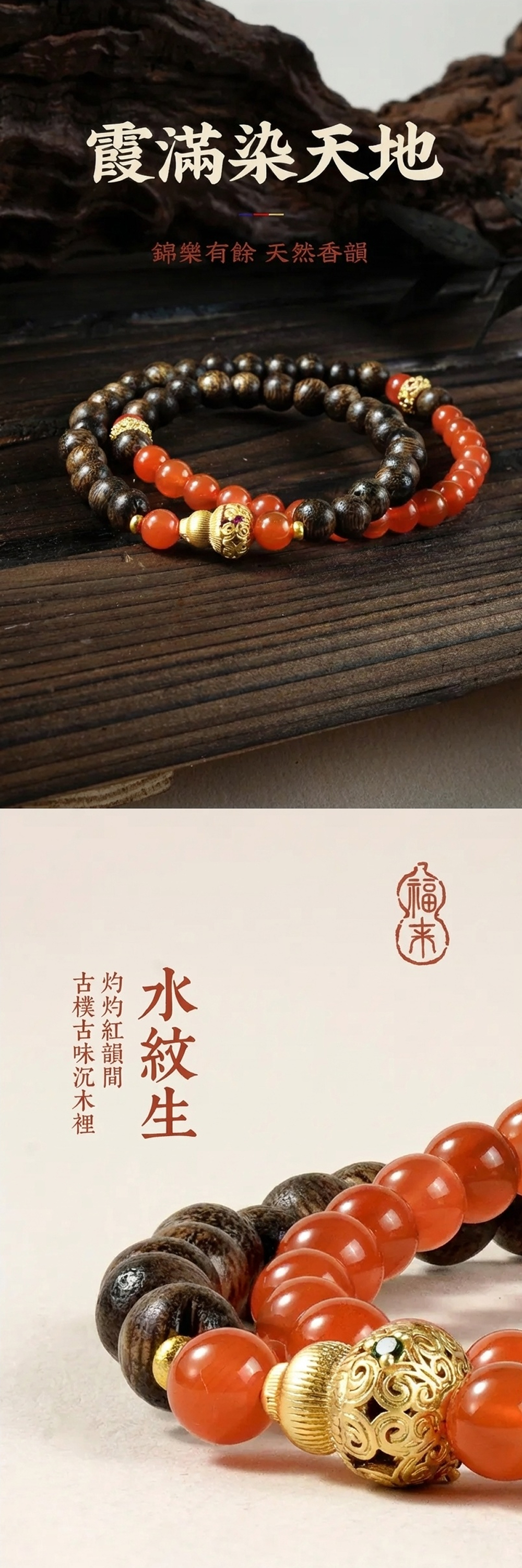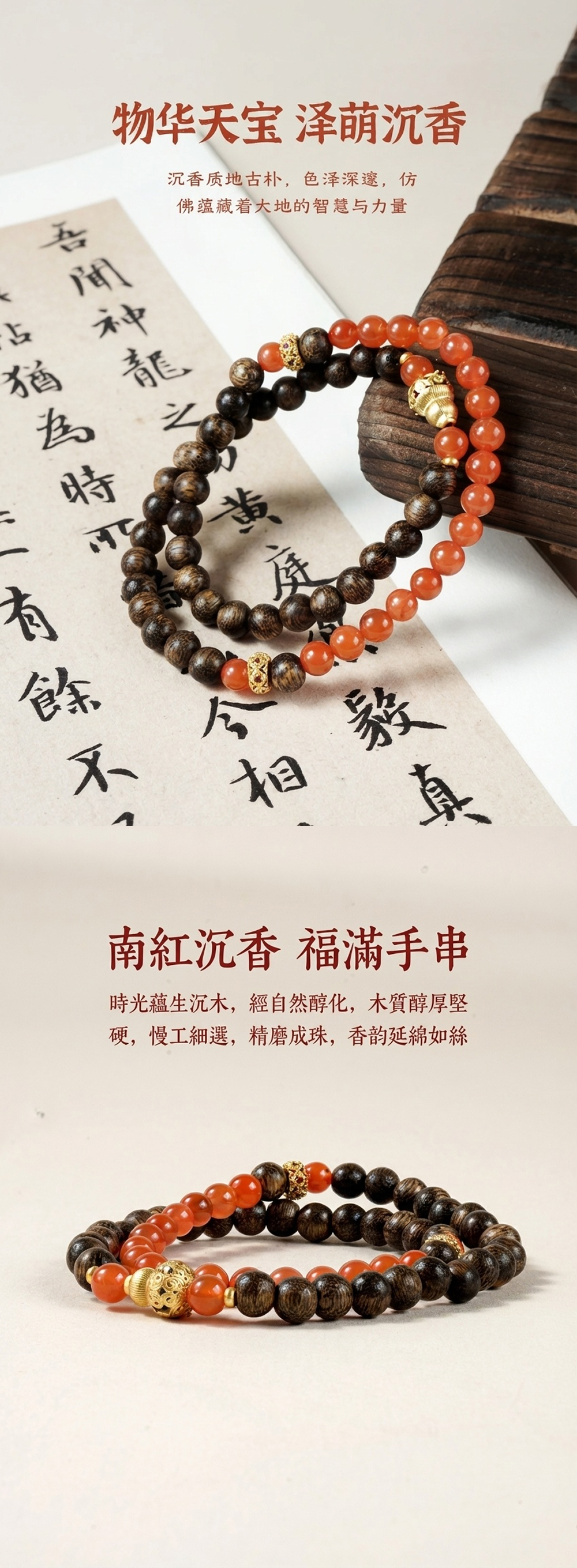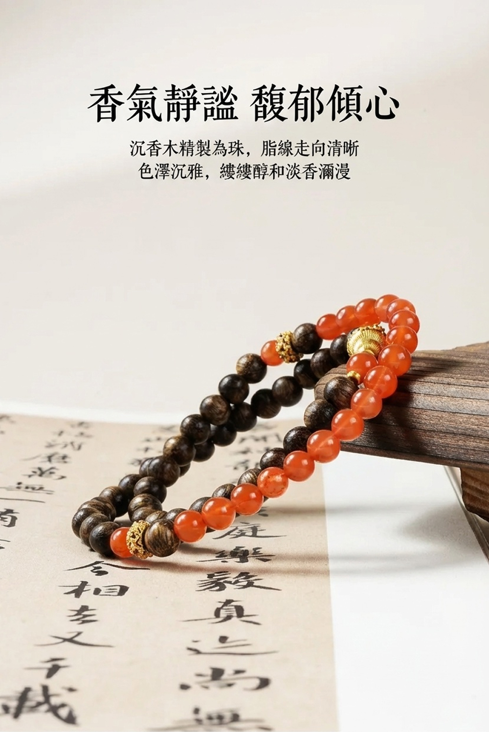 向陽生南紅瑪瑙手串冰飄南紅沉香木 · 平安護佑系列【祈福加持】