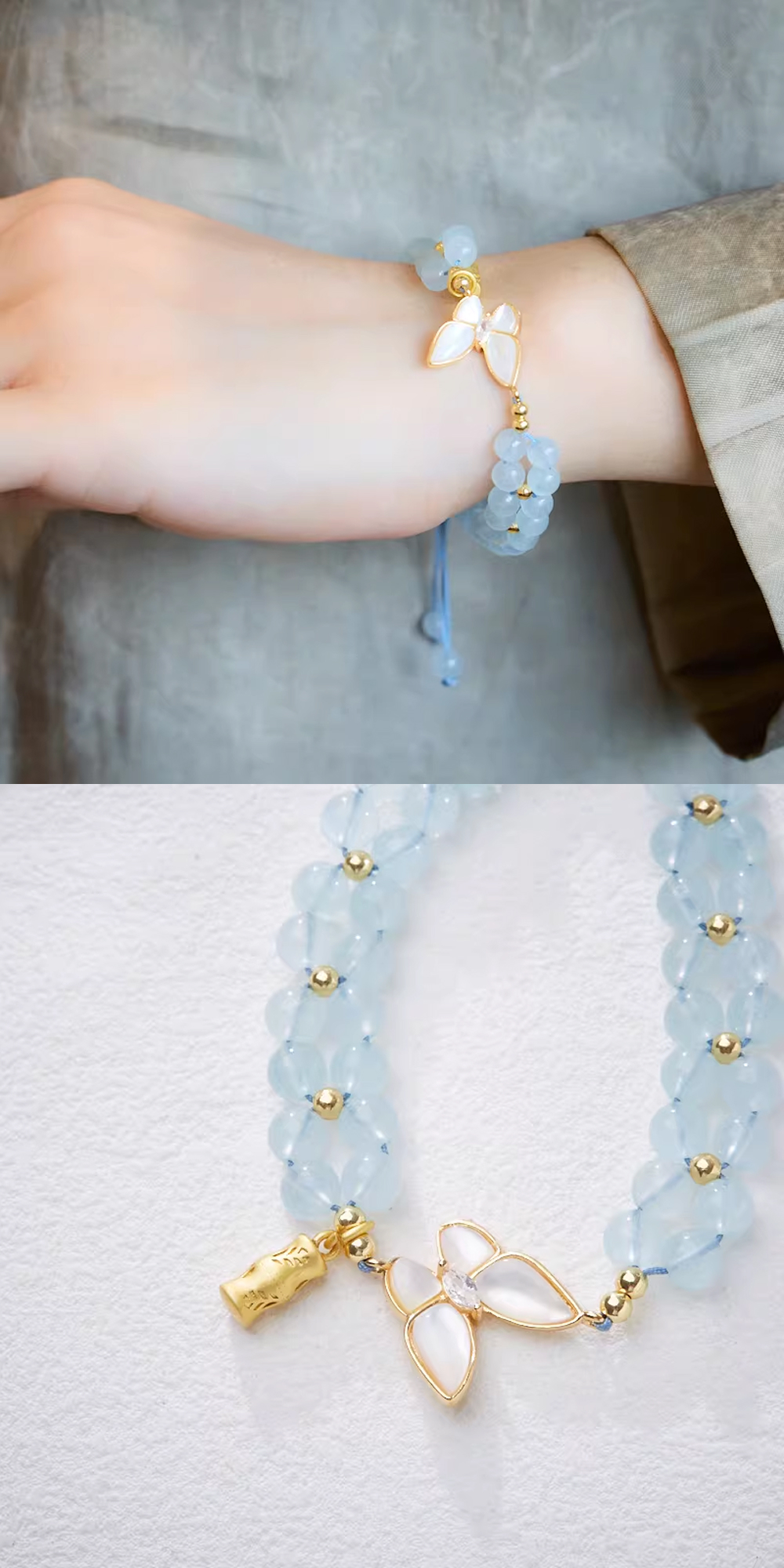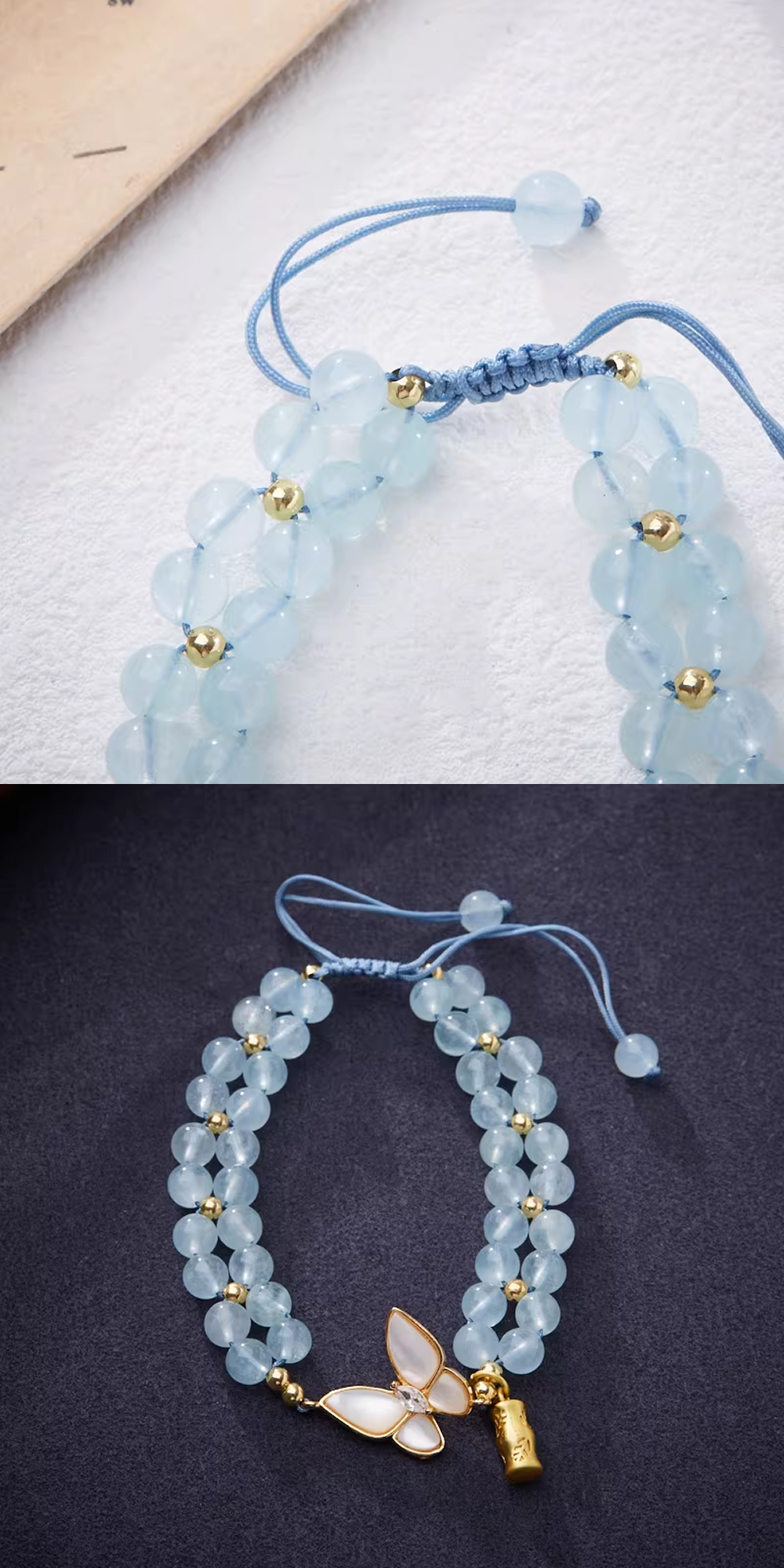 天然海藍寶編織手鏈女破茧成蝶蝴蝶竹節手串「圓滿開運」【祈福加持】