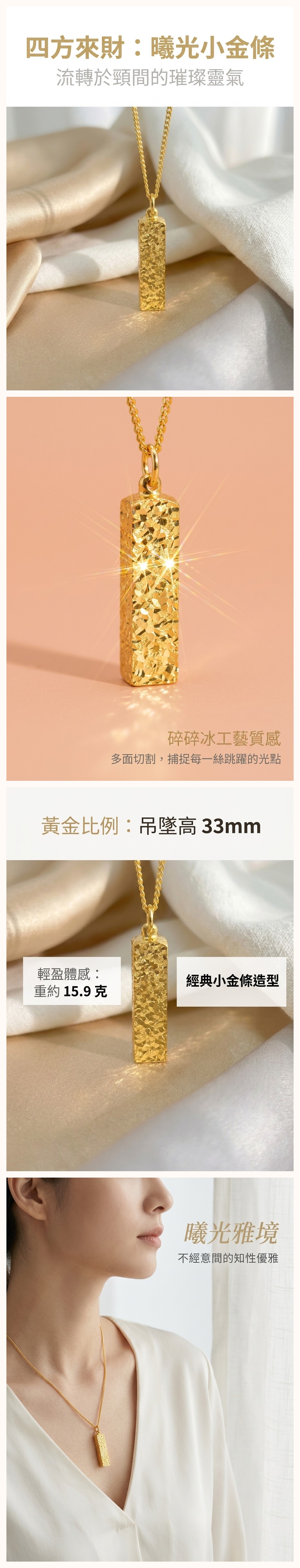 碎碎冰小金條吊墜項鍊「招財系列」【祈福加持】