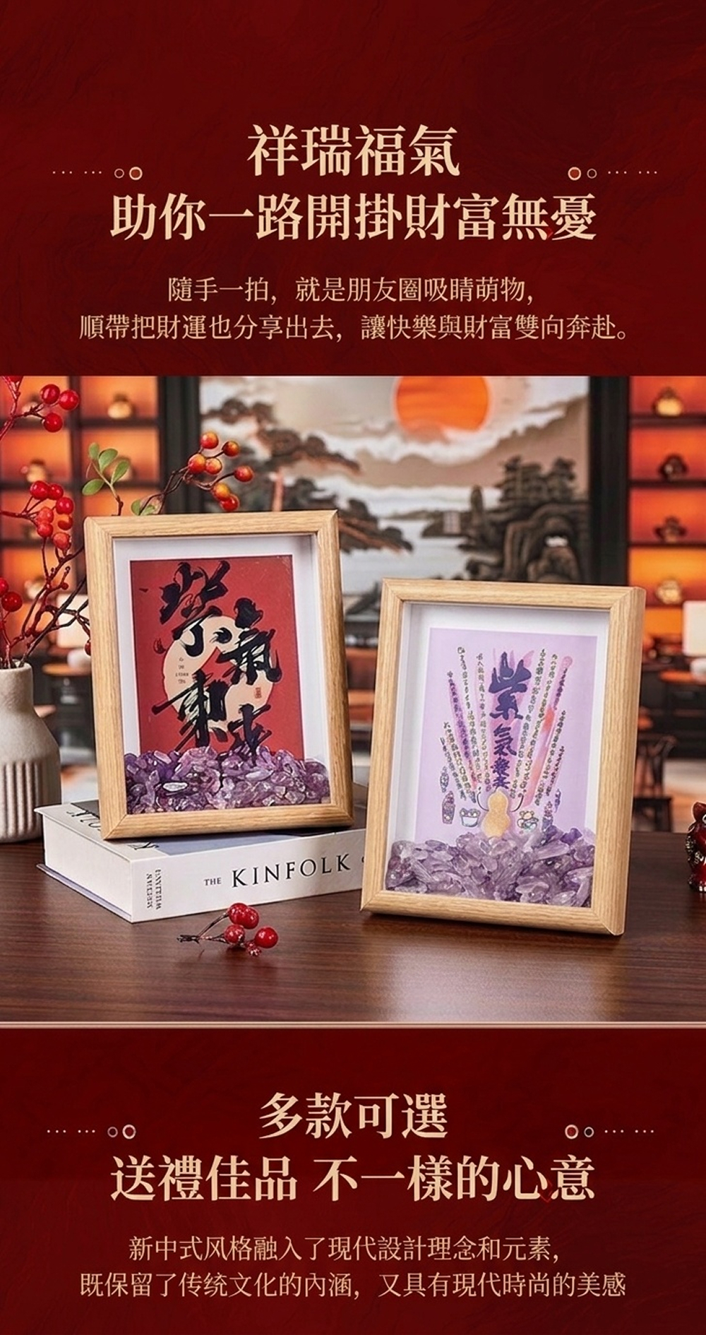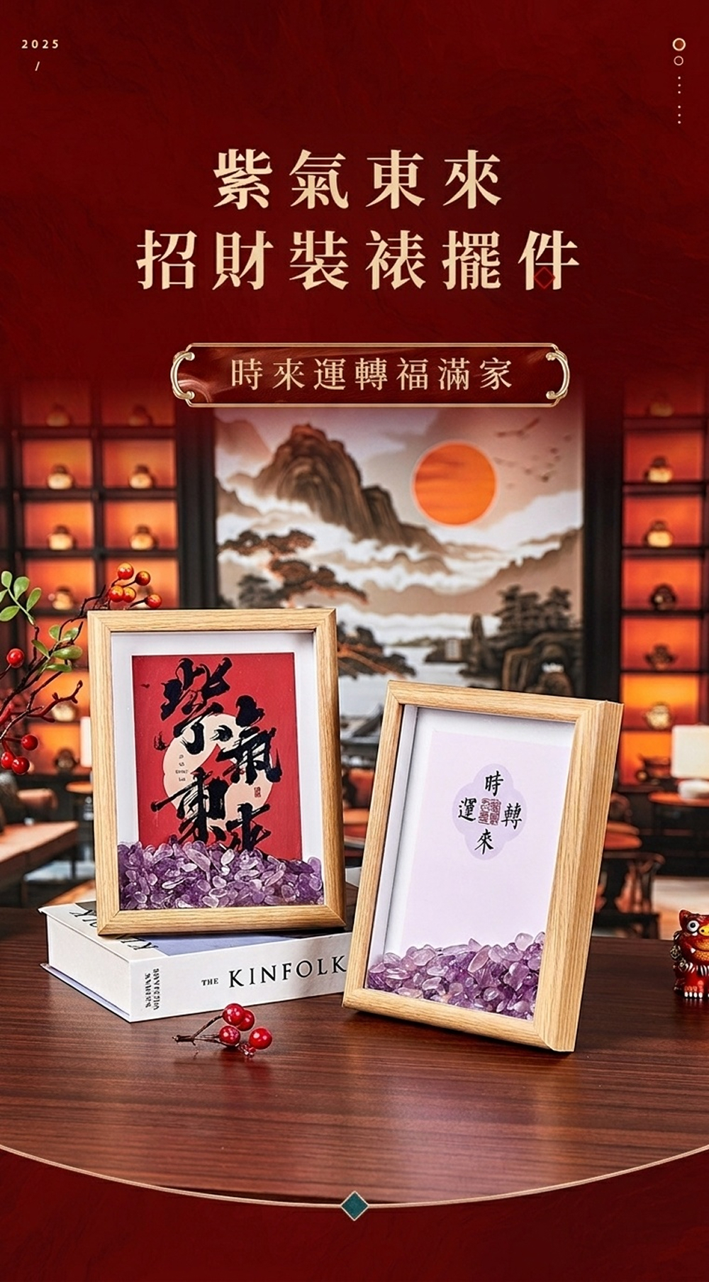 紫氣東來開運招財水晶擺件相框居家玄關擺設