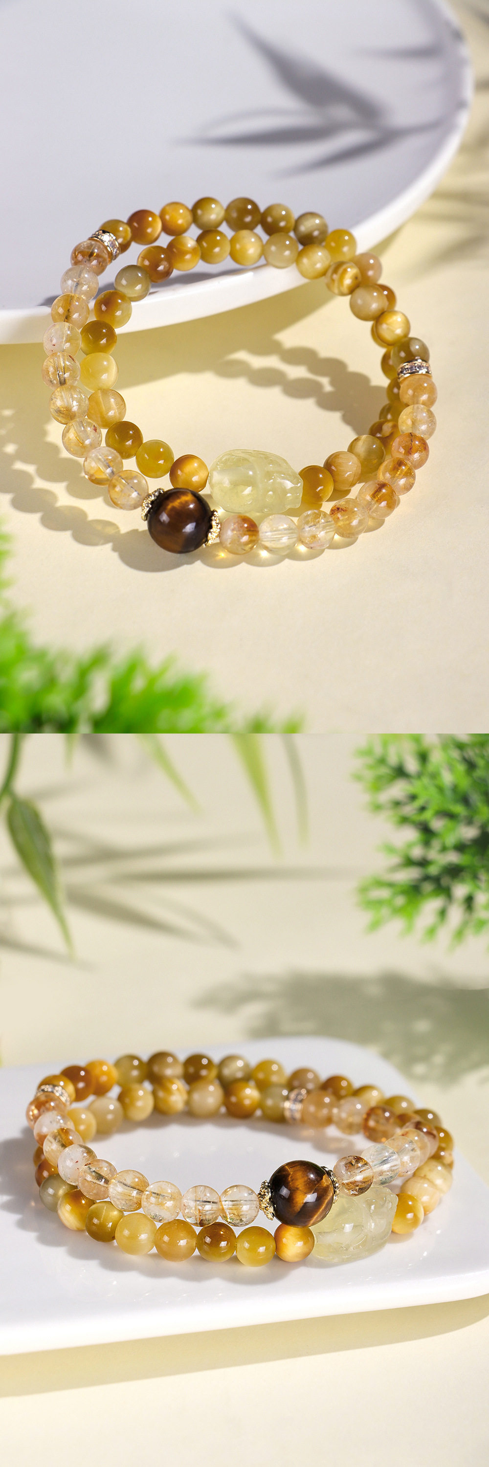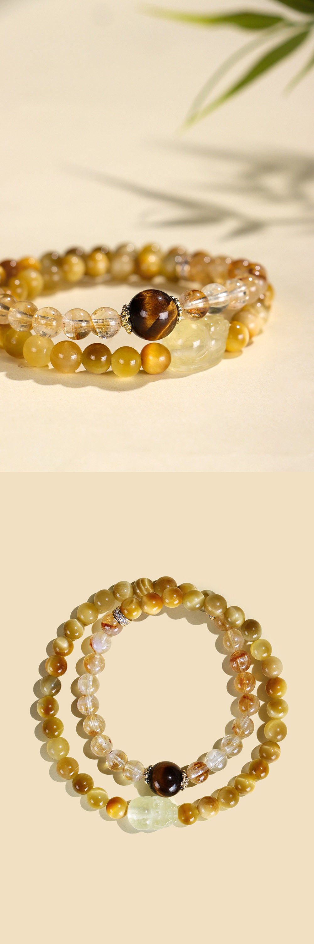 黃水晶貔貅虎眼石雙圈手串「財運来系列」【祈福加持】